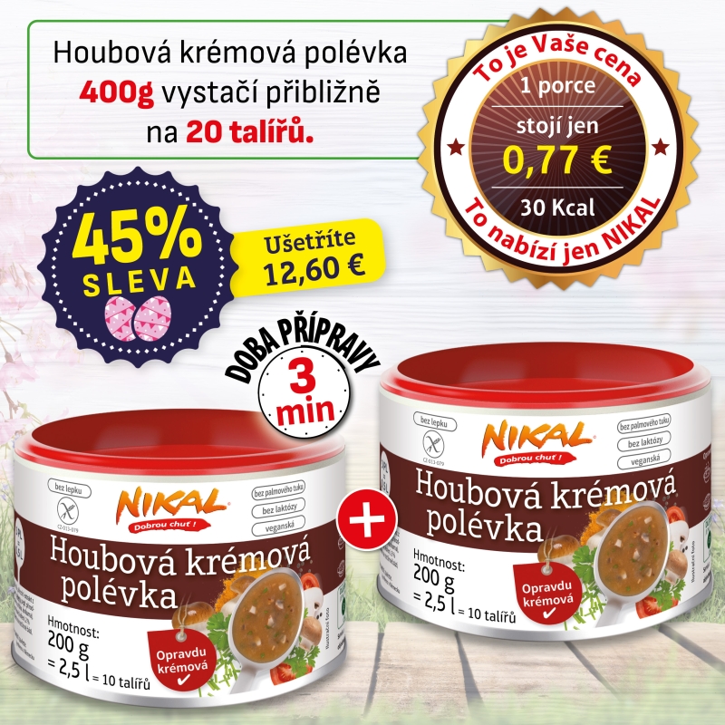 Polévku lze také použít k dochucení omáček – i malé množství dodá polévce nebo omáčce výraznou a nezaměnitelnou houbovou chuť. Vyzkoušejte NIKAL Houbovou krémovou polévku i pro přípravu jemné hříbkové nebo veganské žampionové krémové polévky – potěší každého milovníka hub.