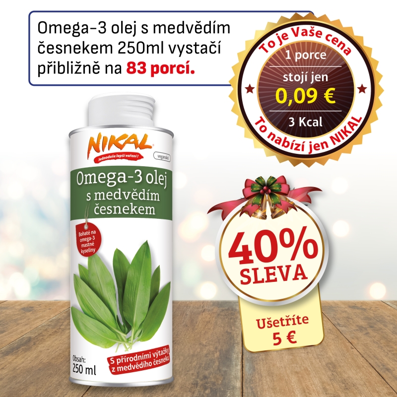 NIKAL Omega-3 olej s medvědím česnekem obsahuje 6,7 g kyseliny alfa-linolenové na 100 ml.