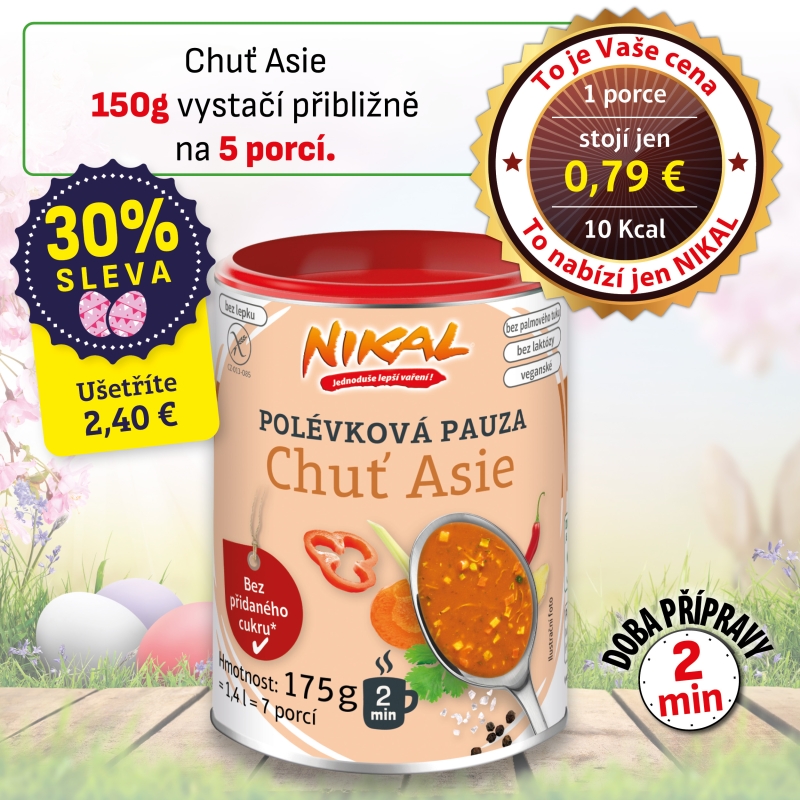 Máte chuť na malý výlet do exotiky? Dopřejte si chvíli odpočinku s Polévkovou pauzou - Chuť Asie a nechte se unést vůní dálek. Sladká, pikantní, jemně pálivá – tato kombinace chutí dokonale ladí a zahřeje na duši i na těle. Nemusíte nikam cestovat, stačí dvě minuty a na lžičce máte poctivou asijskou polévku plnou vůně a chuti. Ideální doma, v práci nebo třeba na cestách.