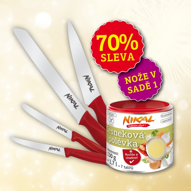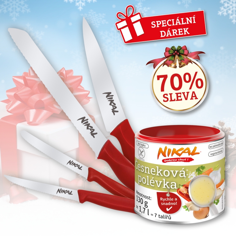 Představujeme špičkovou 4dílnou sadu kuchyňských nožů NIKAL, která je navržena pro každodenní použití i náročné kulinářské výzvy. Ostré čepele, kvalitní materiály a precizní zpracování zajistí snadné krájení pečiva, masa, zeleniny i steaků. Součástí balení je navíc lahodná česneková polévka jako malý bonus.