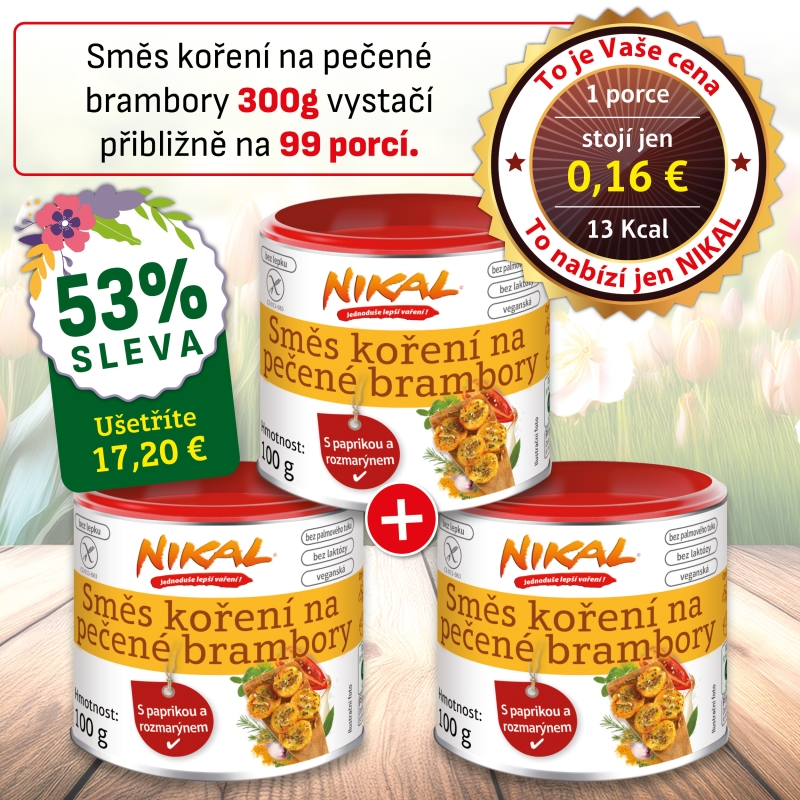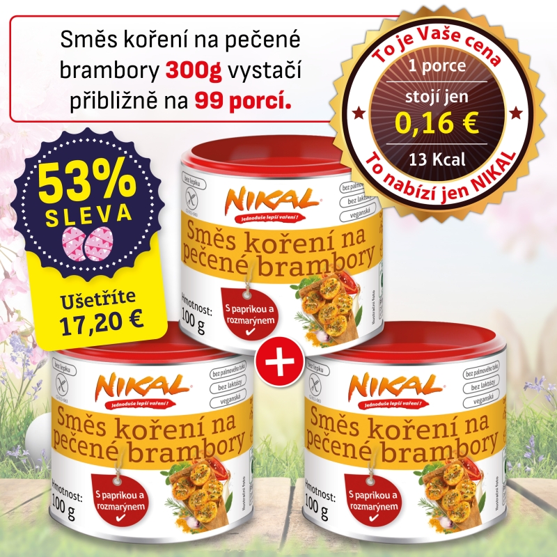 Nová zmes korenia na pečené zemiaky NIKAL kombinuje širokú škálu bylinných a koreňových vôní a vytvára skutočnú chuťovú explóziu. Čerstvé aromatické bylinky, ako je tymian, rozmarín a bazalka, sú v kombinácii s petržlenovou vňaťou, cesnakom, čiernym a zeleným korením, paprikou, paradajkami, koriandrom, majoránom, bobkovým listom a rascou, naozaj výraznou chuťovou rozprávkou.